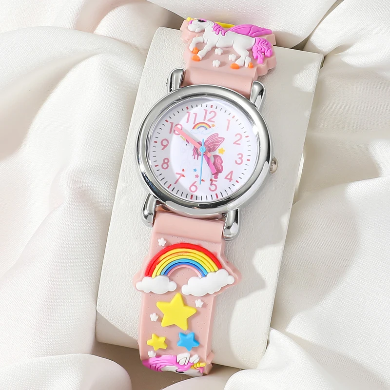 2025 nuevo Reloj para niños correa de silicona amor Arco Iris Pony niños Reloj de cuarzo bebé tiempo de estudio Reloj de niña Reloj Montre