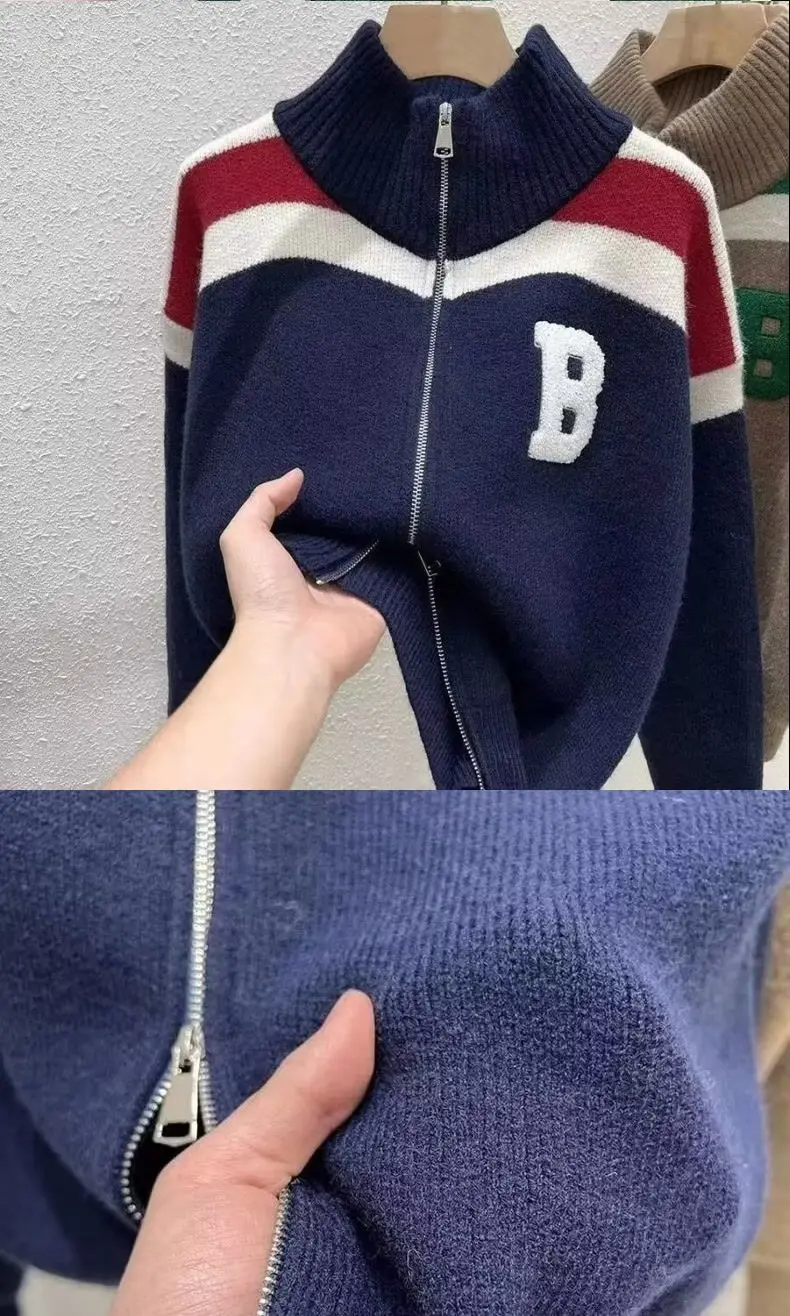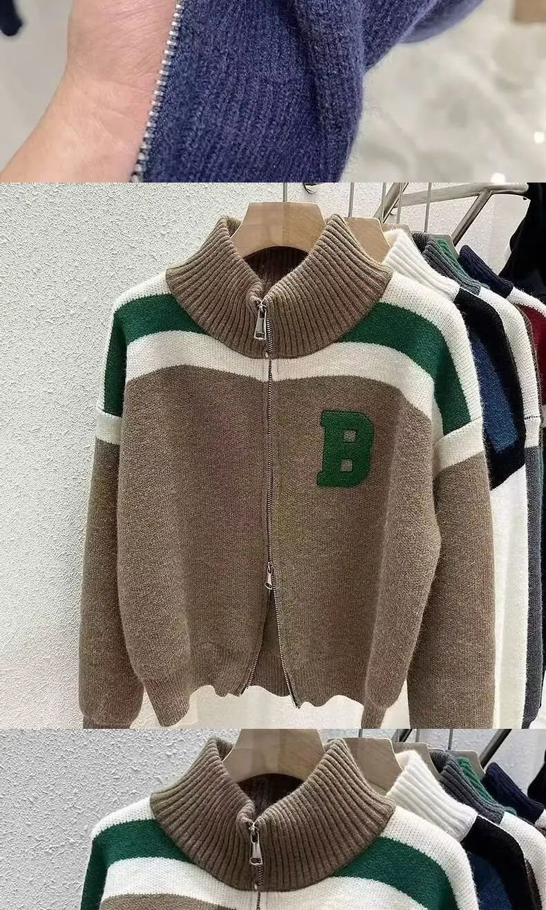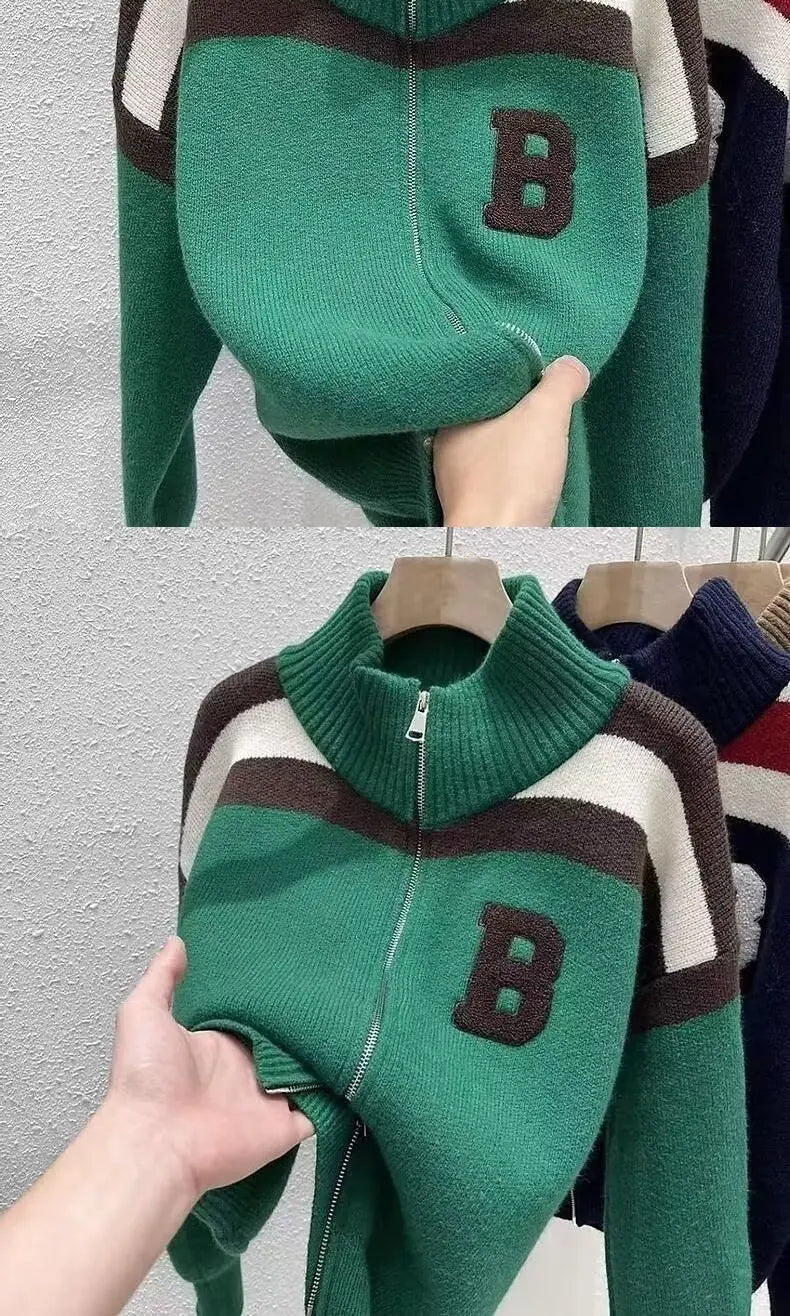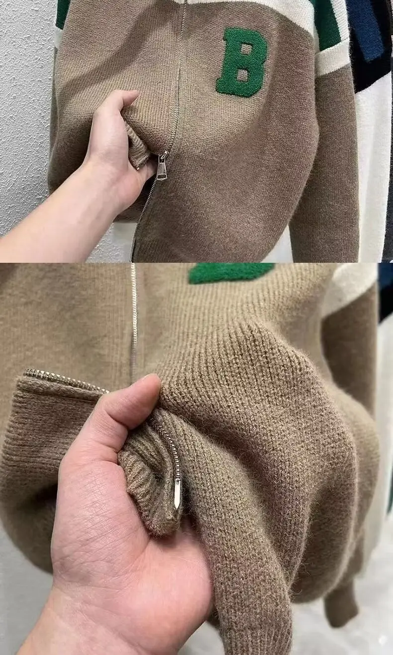 Cárdigan tejido con cuello de media altura y cremallera, suéter de retazos con letras, abrigo para hombre y mujer, Tops de moda de nueva tendencia para Otoño e Invierno