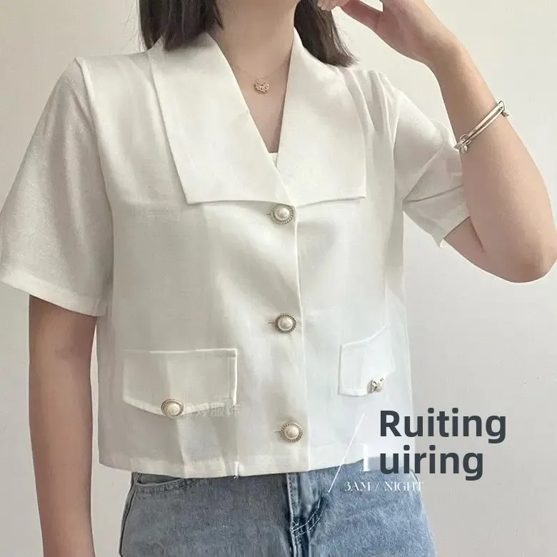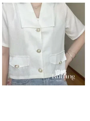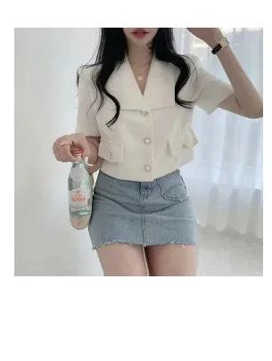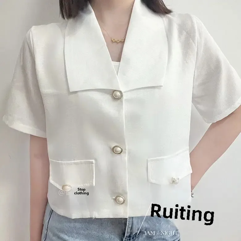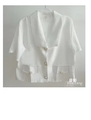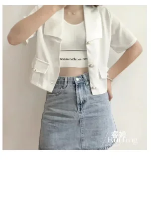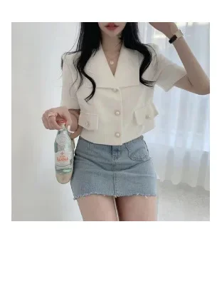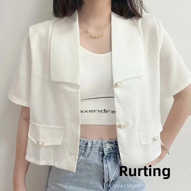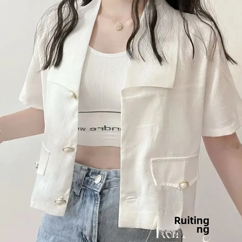 Chaqueta corta de estilo de fragancia para mujer, abrigo informal holgado de manga corta de fibra de poliéster, versión coreana, novedad de verano