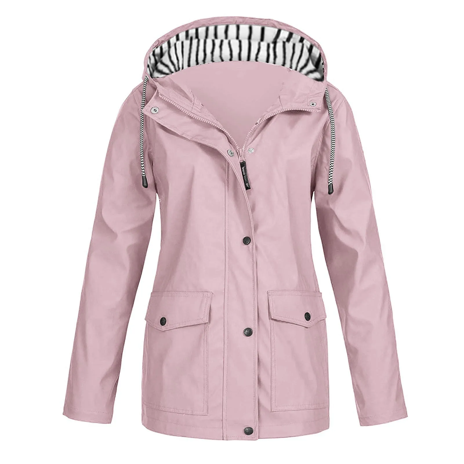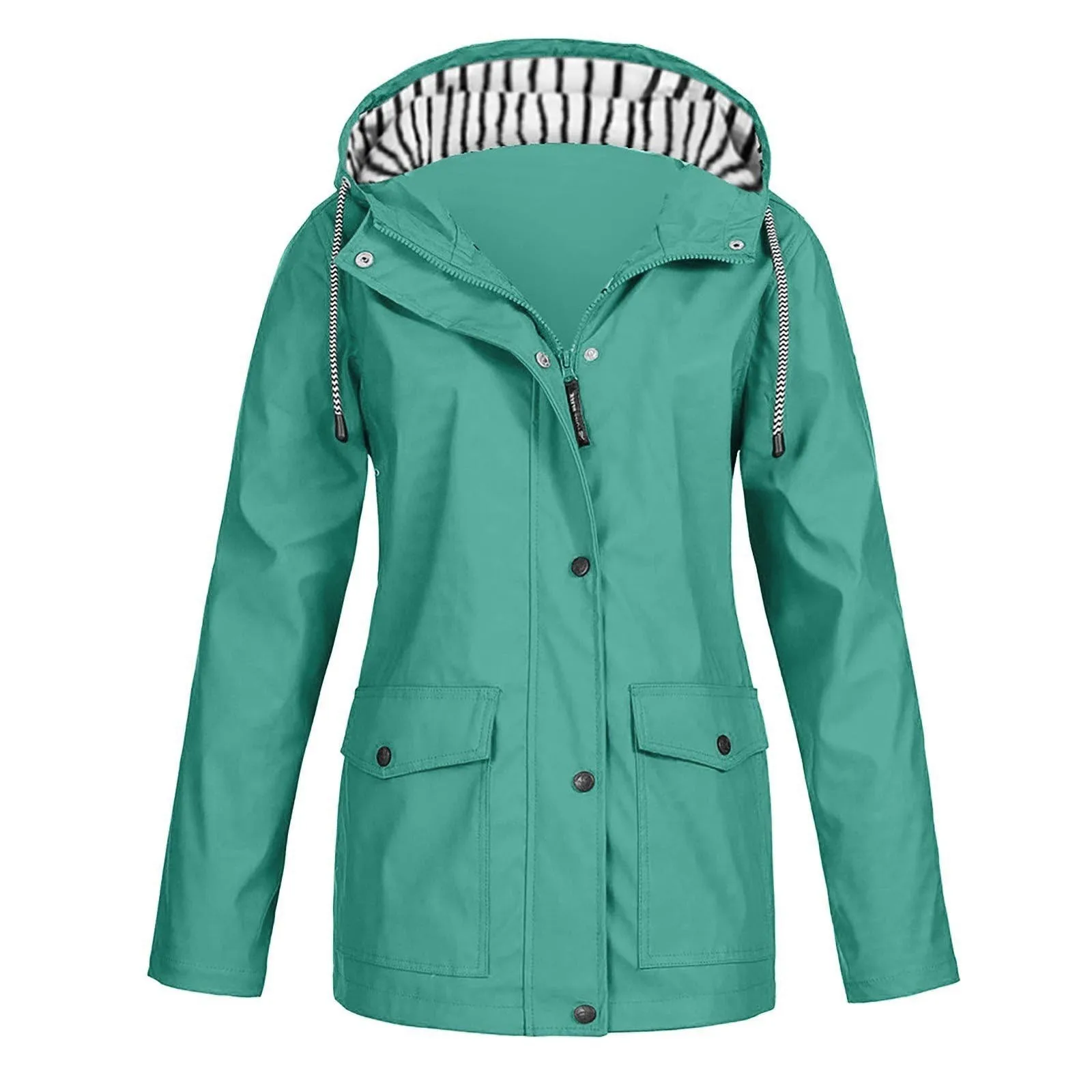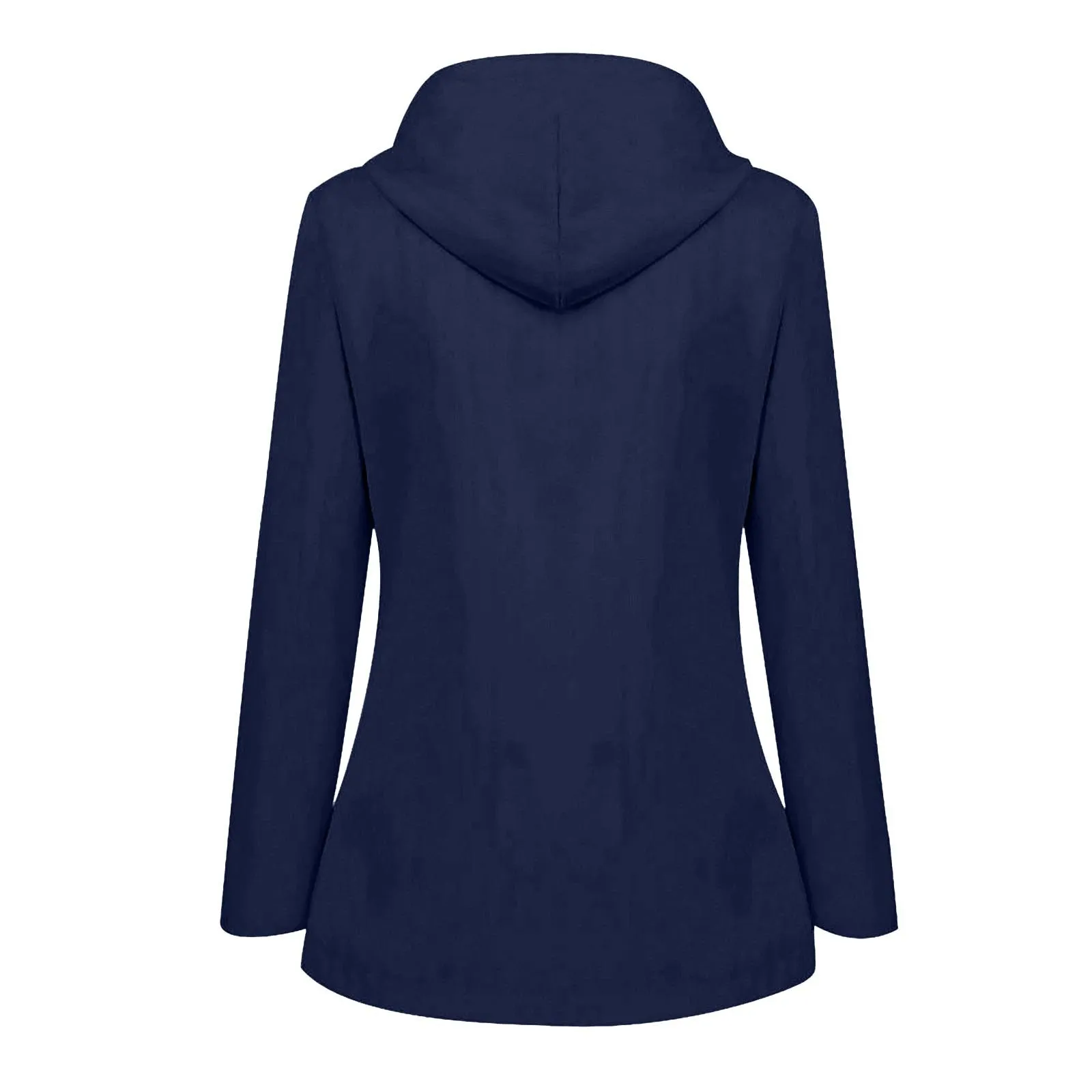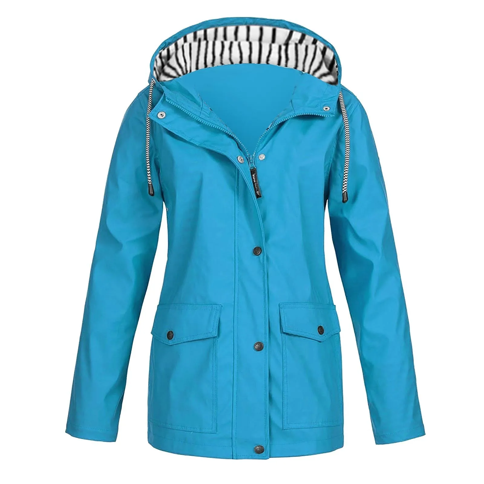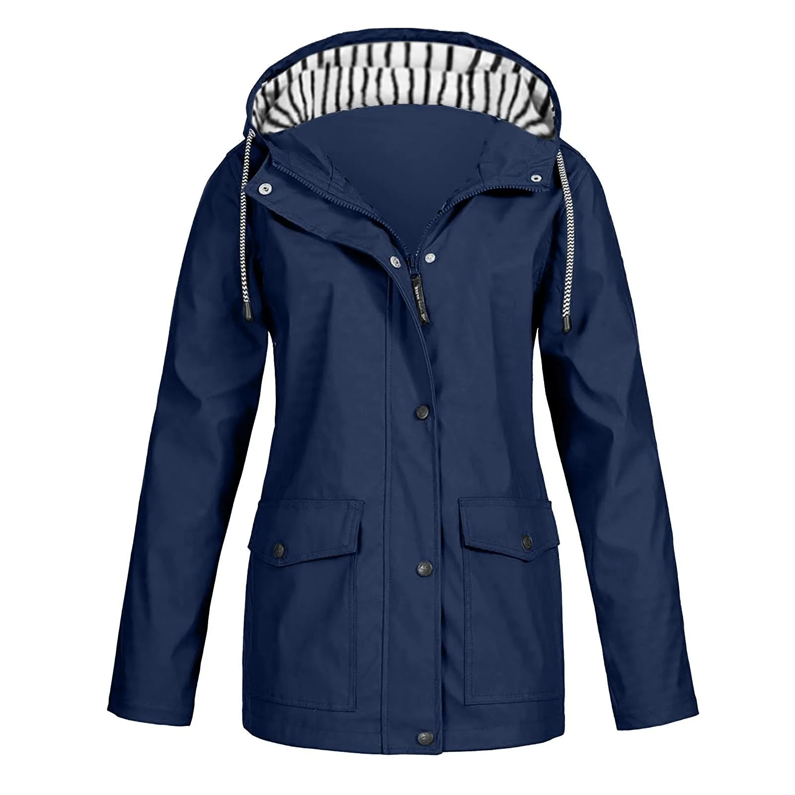 Chaqueta impermeable para mujer, gabardinas largas con capucha, cortavientos forrado, chaqueta de viaje, chaqueta de lluvia a rayas sólidas para exteriores