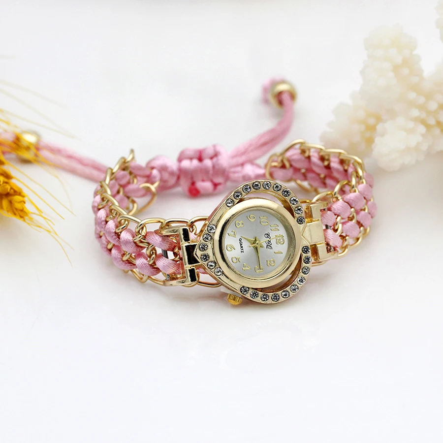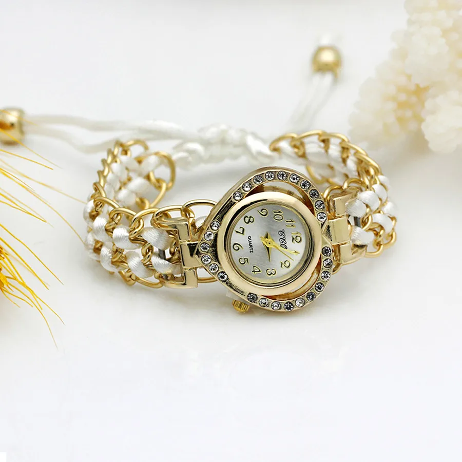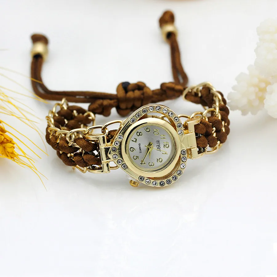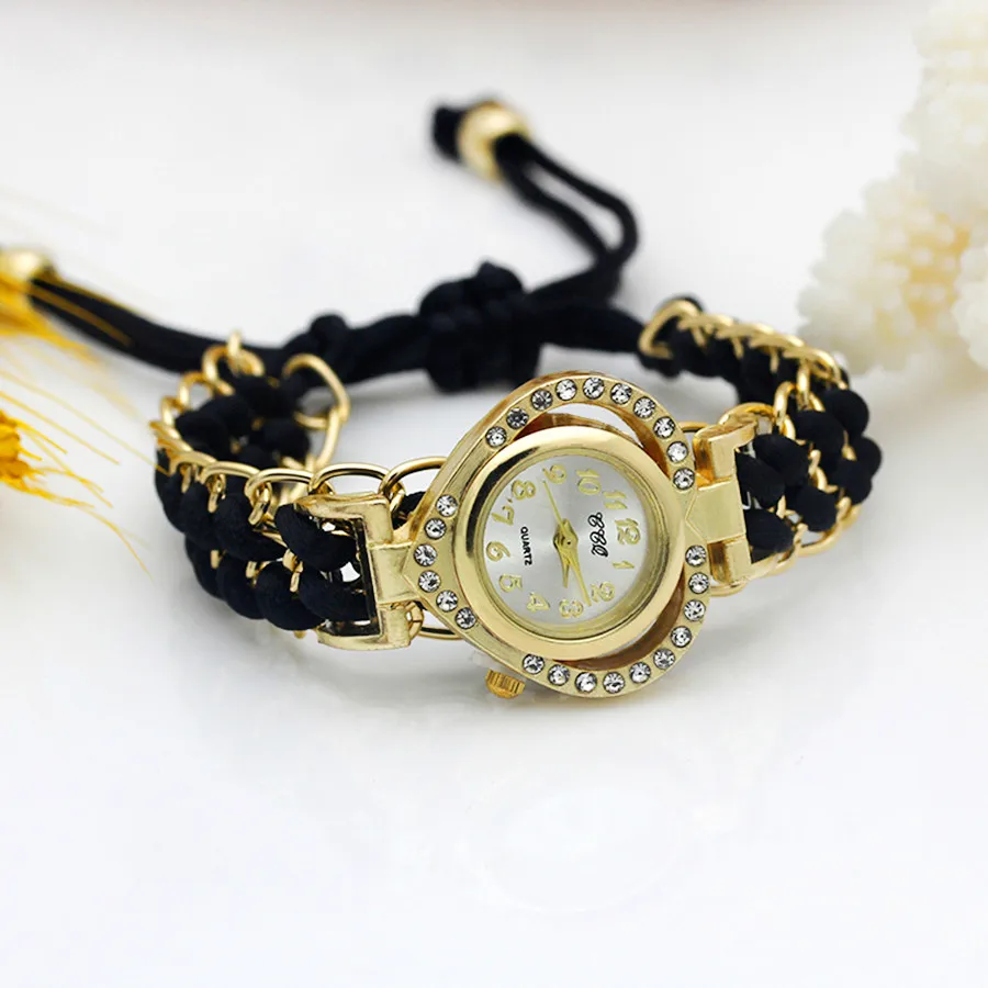Reloj de Vestir para Mujer Loving Heart Gold Nuevo Reloj de Pulsera Tejido a Mano para Damas Color Reloj de Tela con Brillantes de Imitación Relucientes Reloj Dulce para Chicas