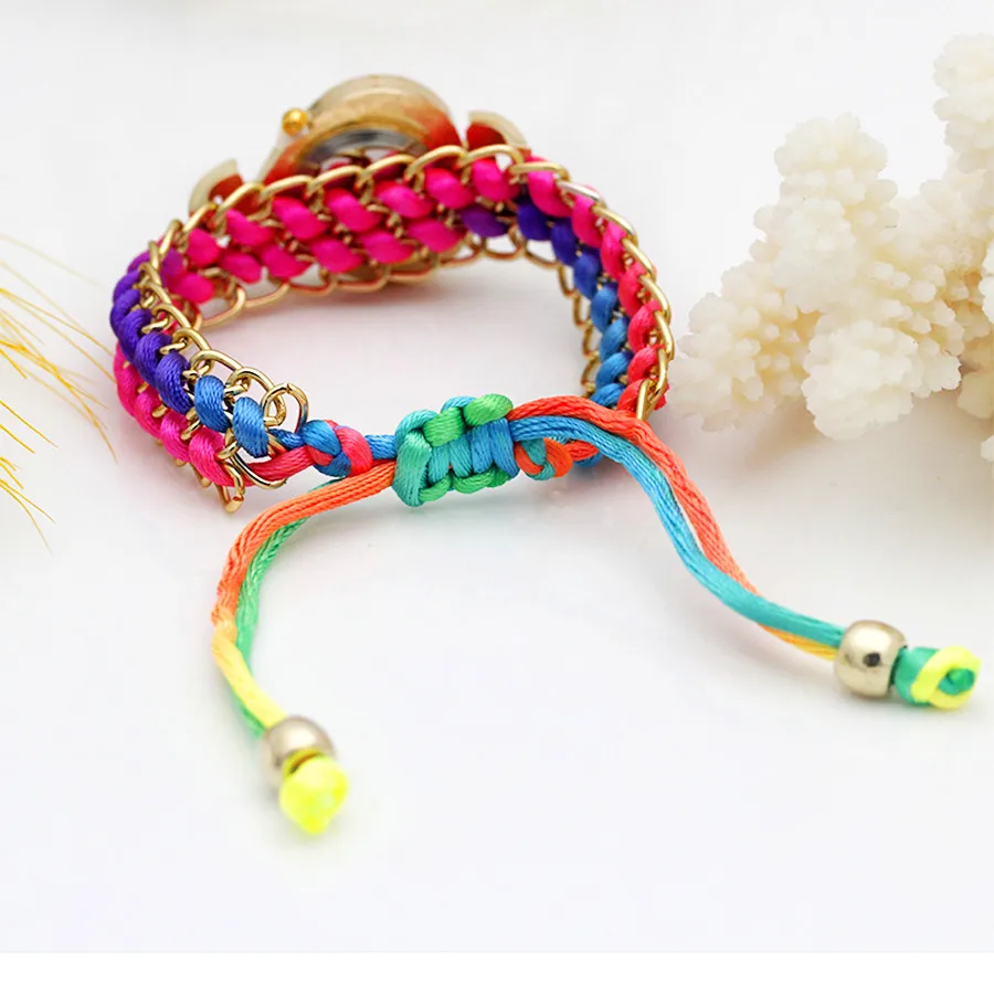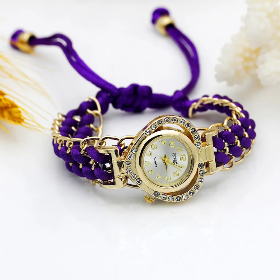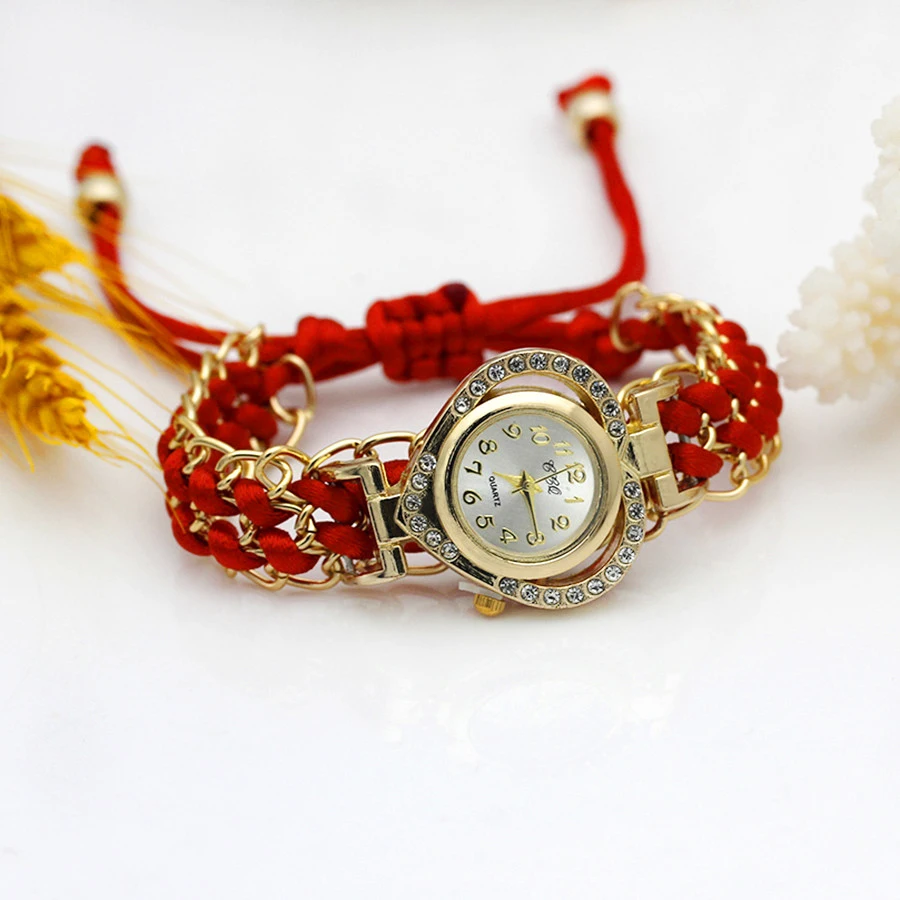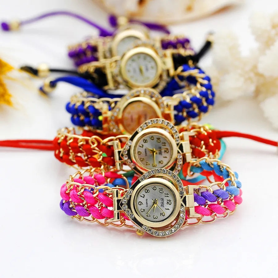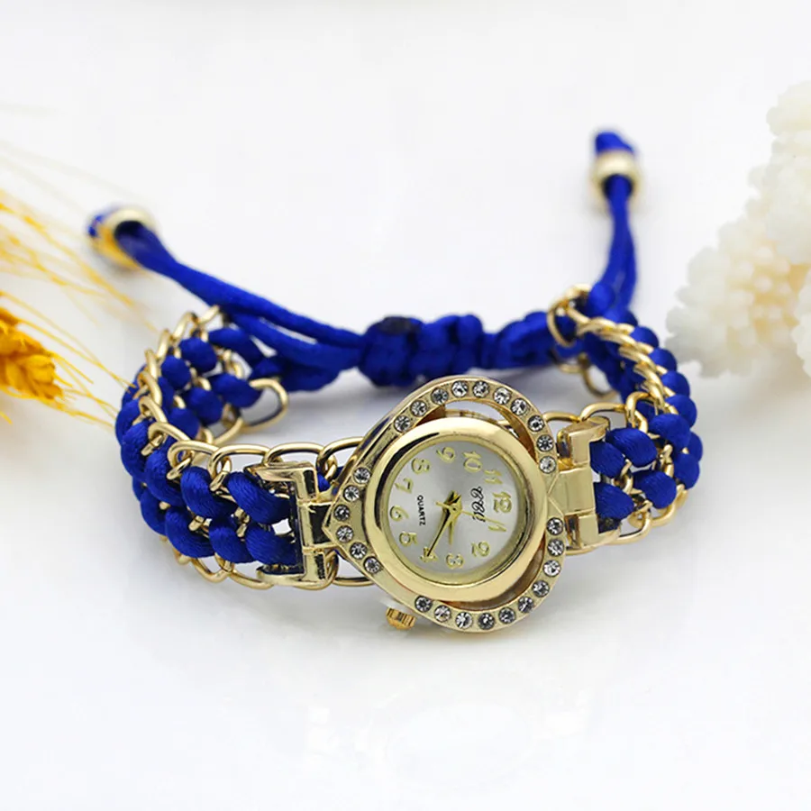 Reloj de Vestir para Mujer Loving Heart Gold Nuevo Reloj de Pulsera Tejido a Mano para Damas Color Reloj de Tela con Brillantes de Imitación Relucientes Reloj Dulce para Chicas
