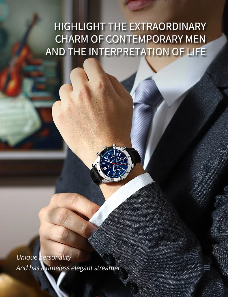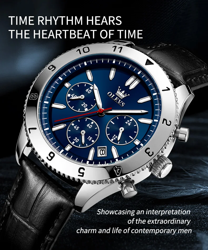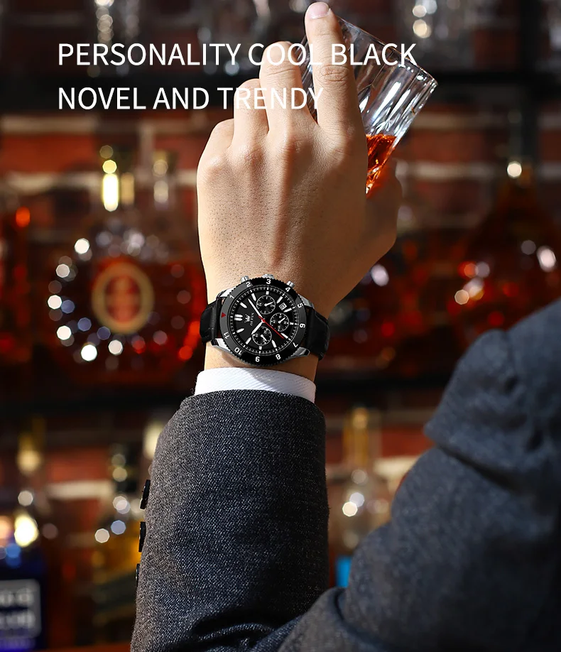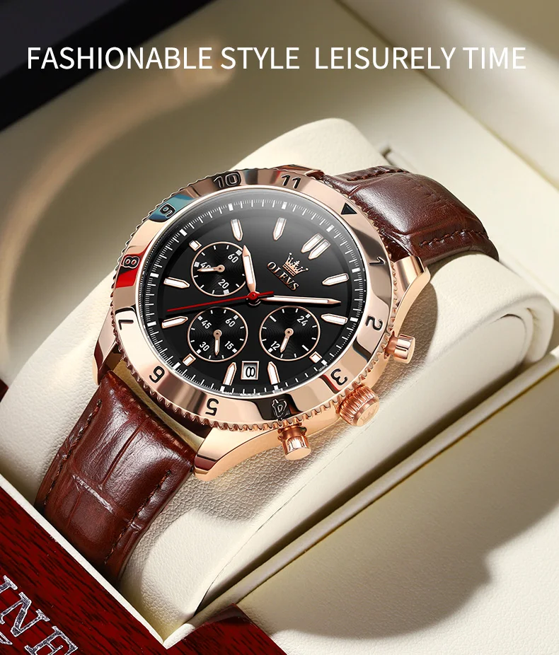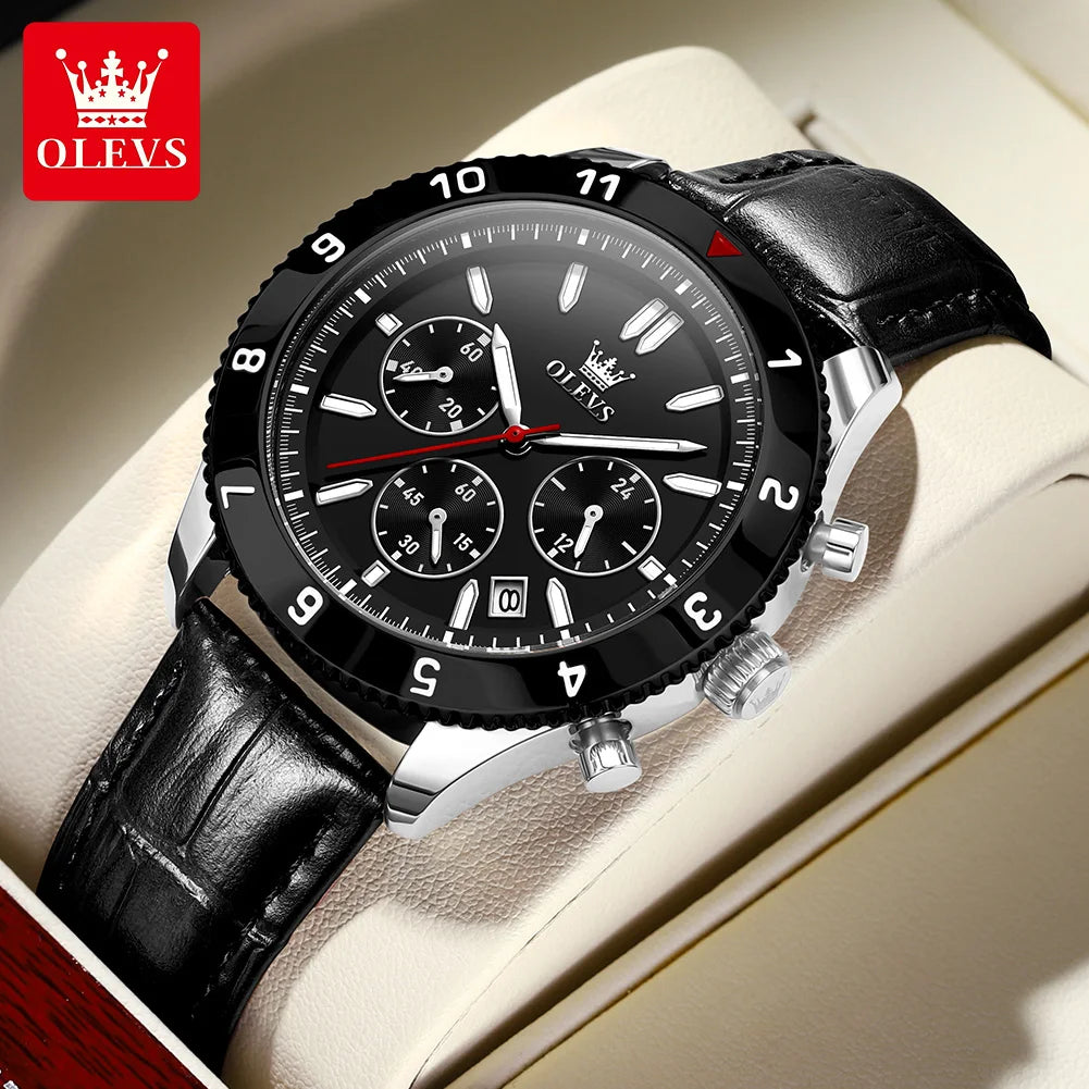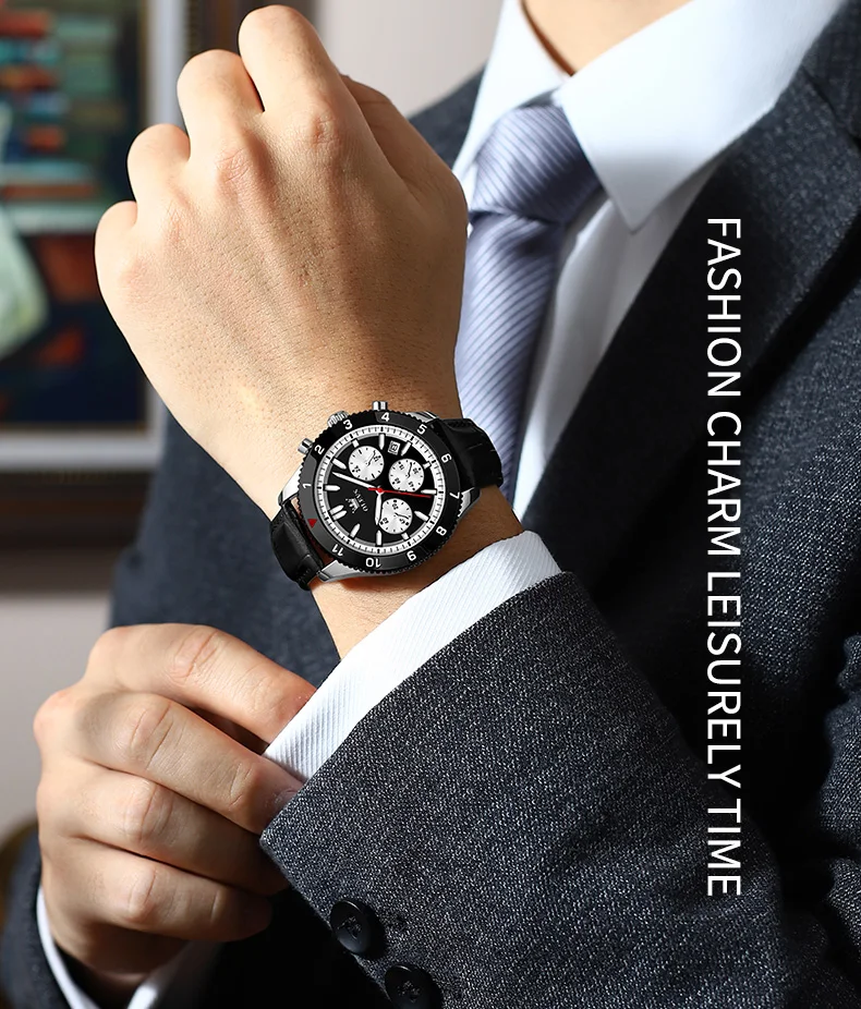 Reloj de cuarzo original para hombre, correa de cuero, cronógrafo, calendario, relojes de pulsera luminosos impermeables para hombre