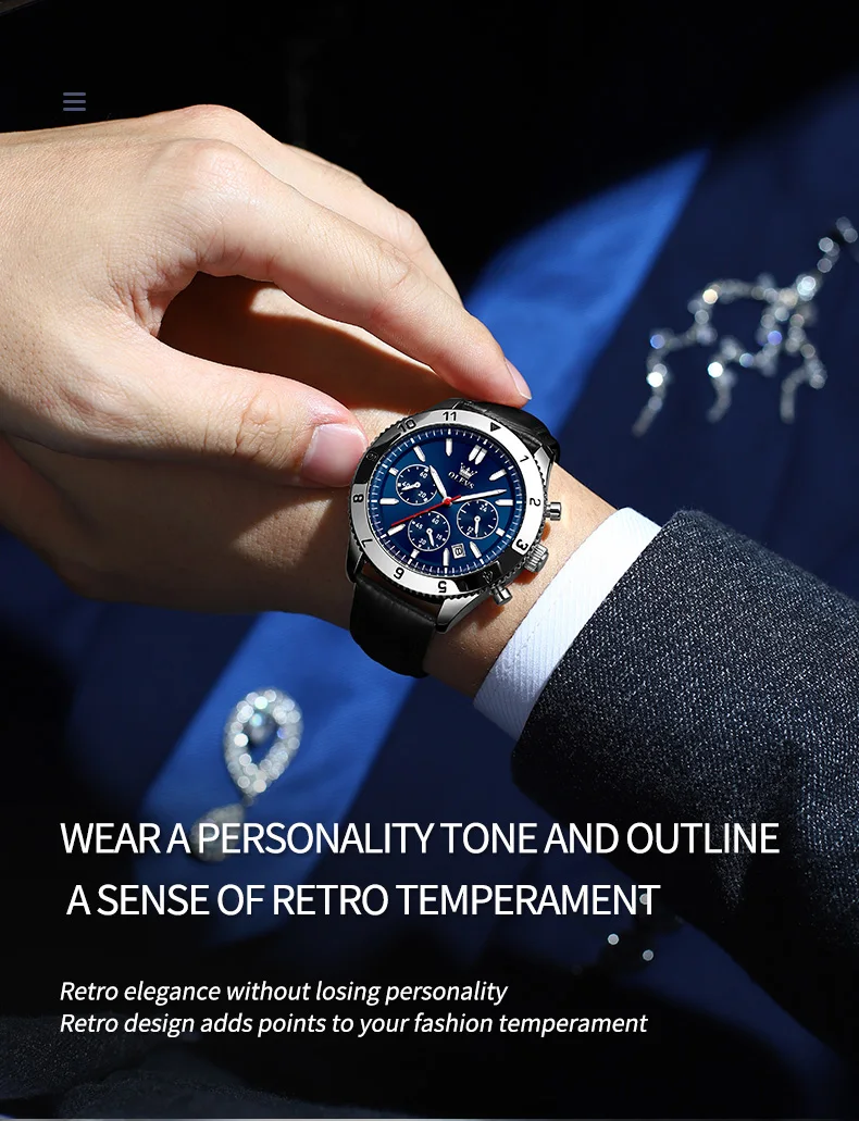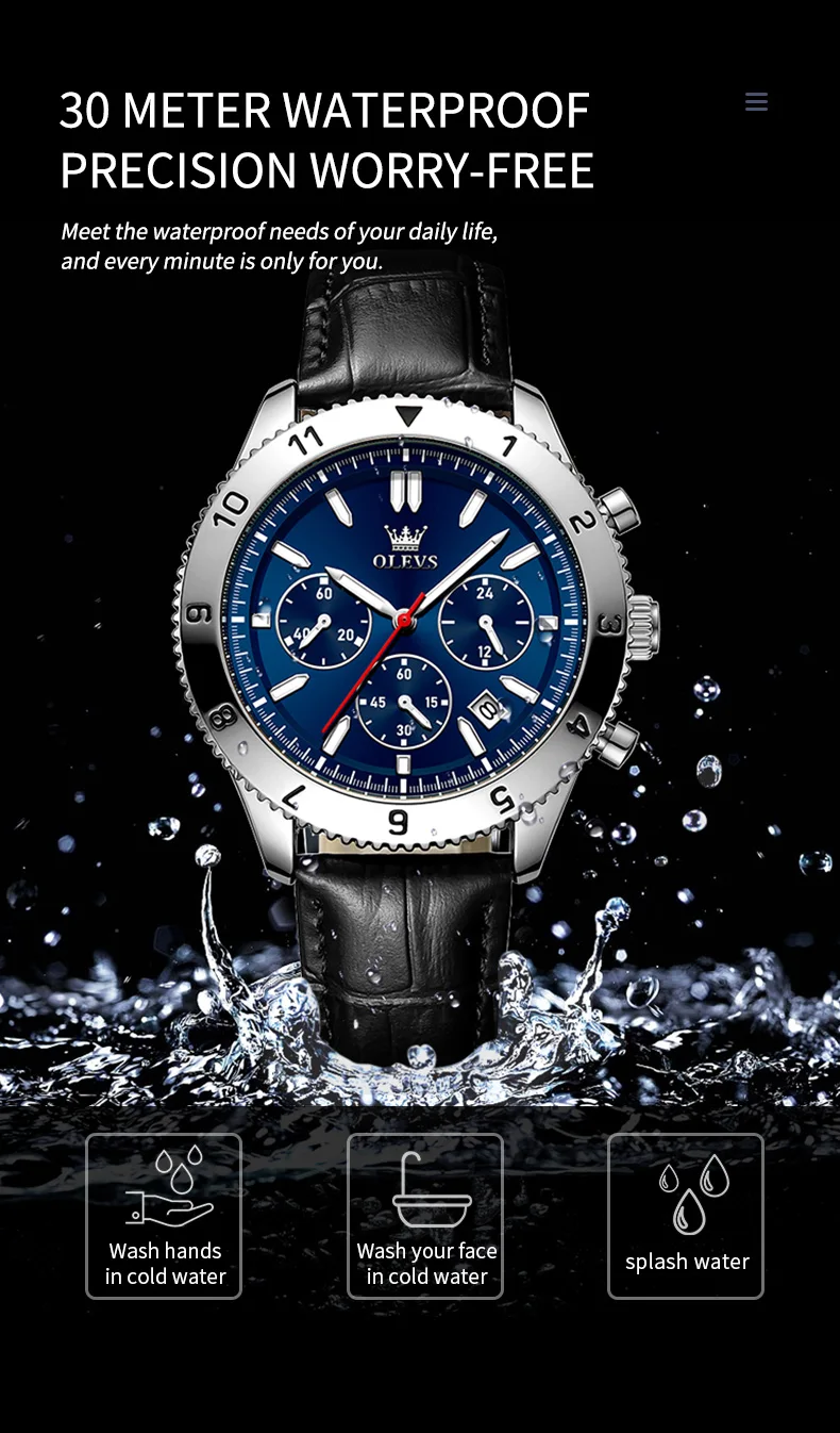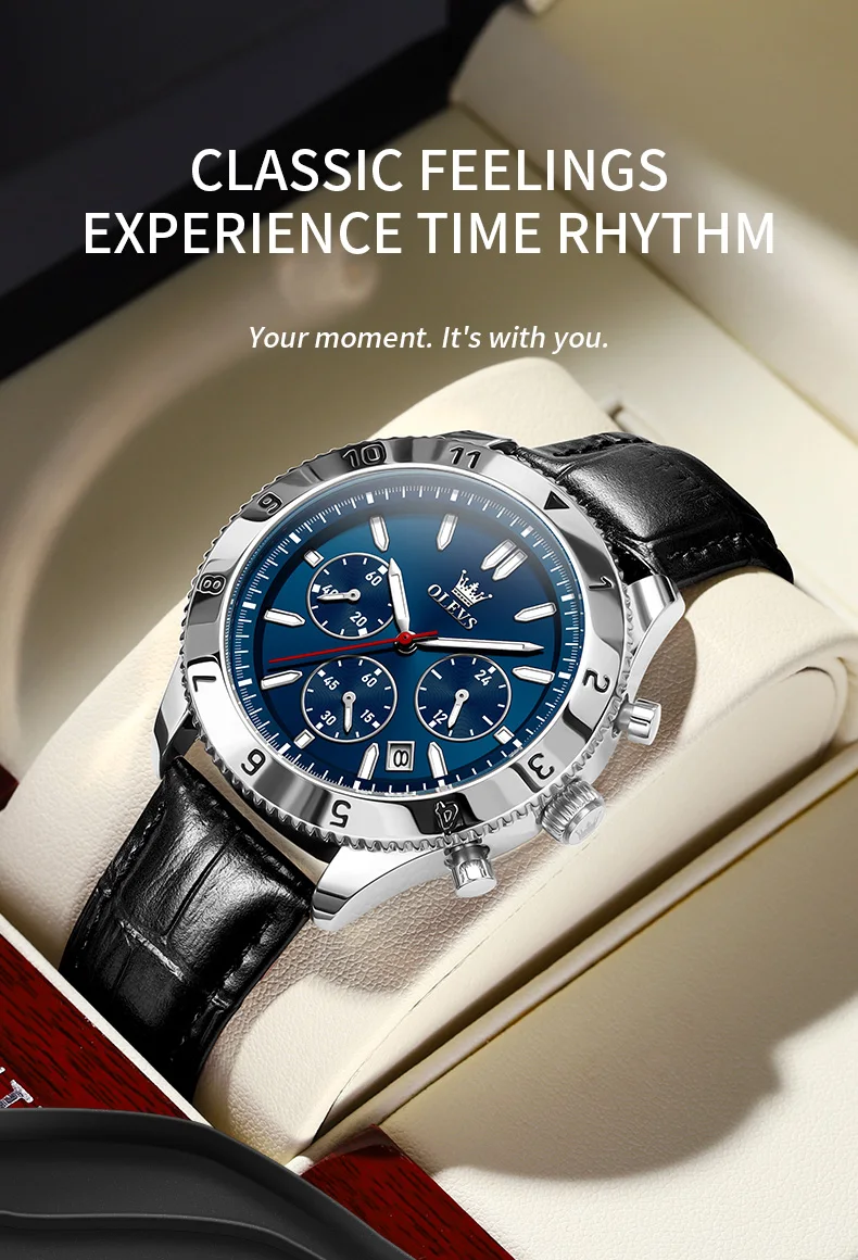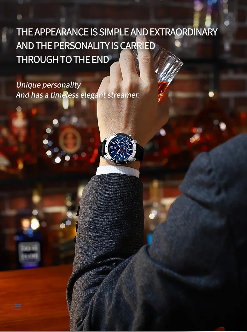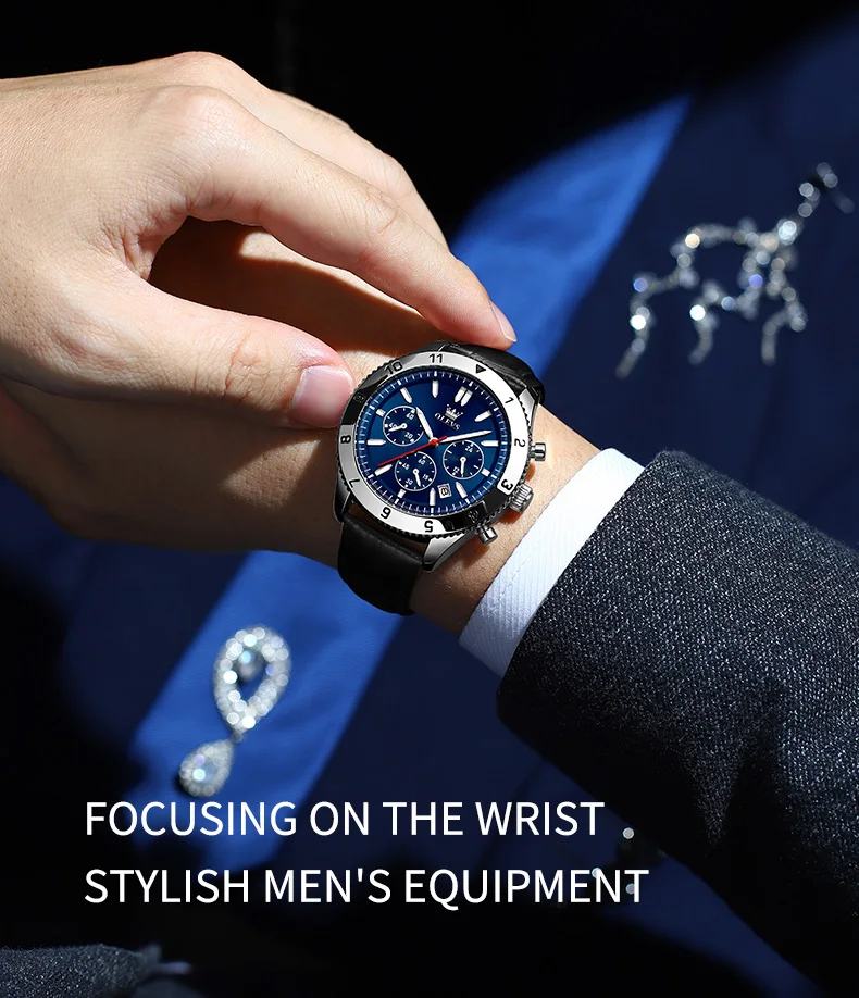 Reloj de cuarzo original para hombre, correa de cuero, cronógrafo, calendario, relojes de pulsera luminosos impermeables para hombre
