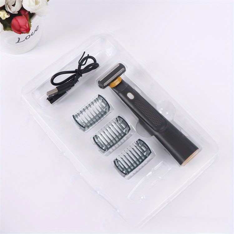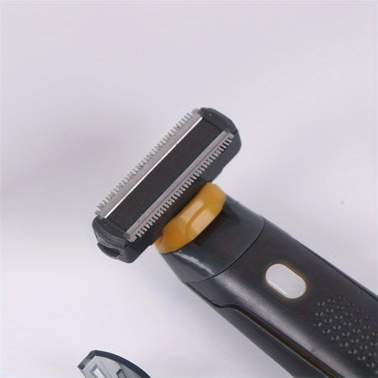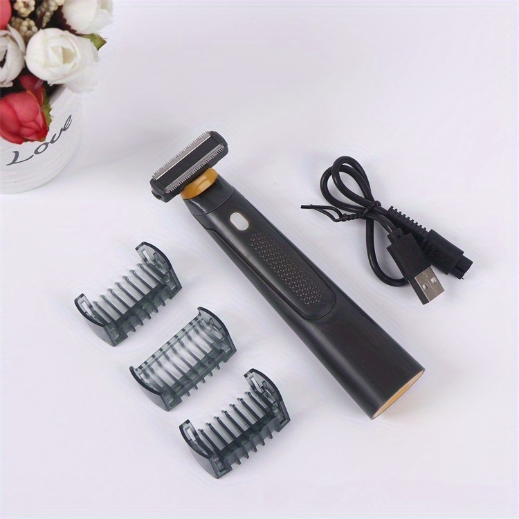 Recortadora eléctrica para hombres recargable por USB - Elegante diseño en negro con detalles amarillos, batería de 800mAh, incluye 3 peines de aseo, afeitadora portátil mini.