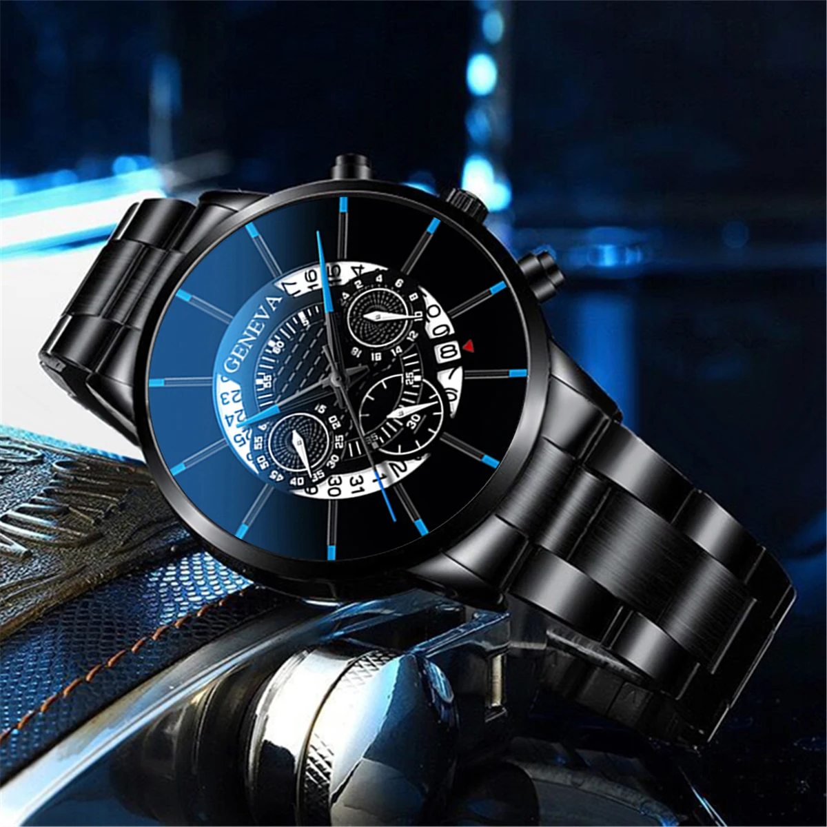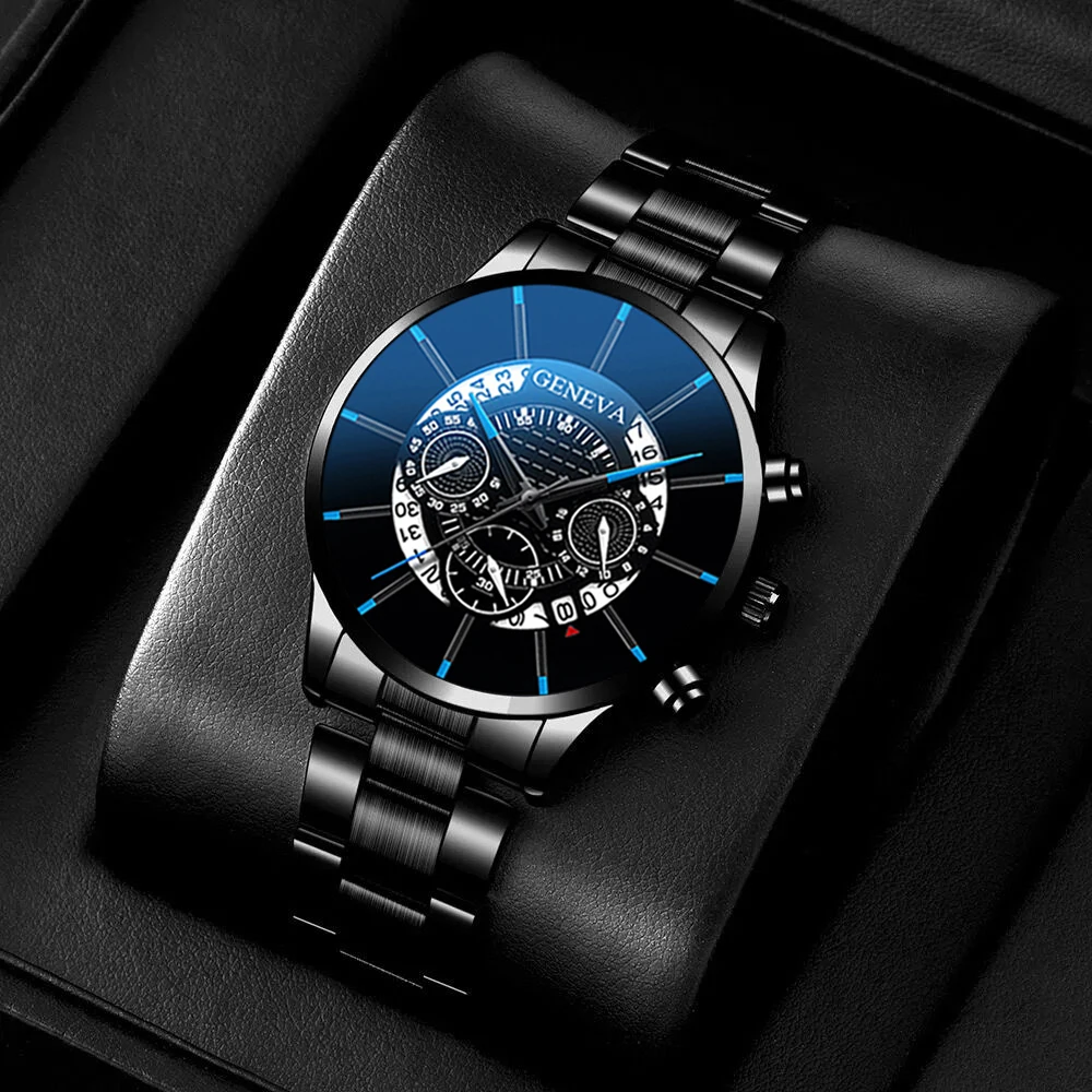 Reloj con banda de acero versátil para hombre, movimiento de cuarzo, gafas de sol, billetera, regalo perfecto para hombre 3 uds.