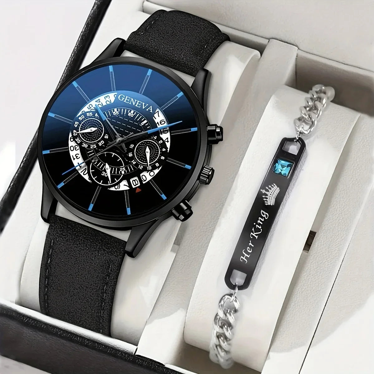Reloj de cuarzo con correa hueca versátil para hombre, Reloj clásico de calle a la moda + 1 pulsera