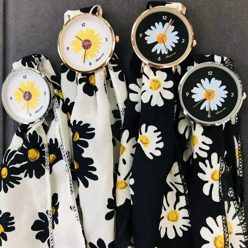 Reloj de cuarzo con correa única de tela de margaritas para mujer - Reloj casual de moda con diseño de girasol