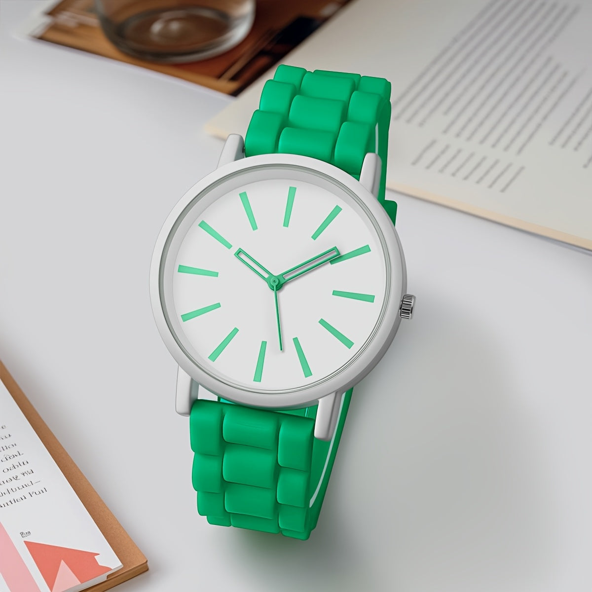 Reloj de cuarzo redondo sencillo y elegante - Reloj de pulsera casual de moda con correa de silicona para mujeres - Caja no de aleación, marcadores de barra, varios colores, operado con batería (batería de botón <20mm)