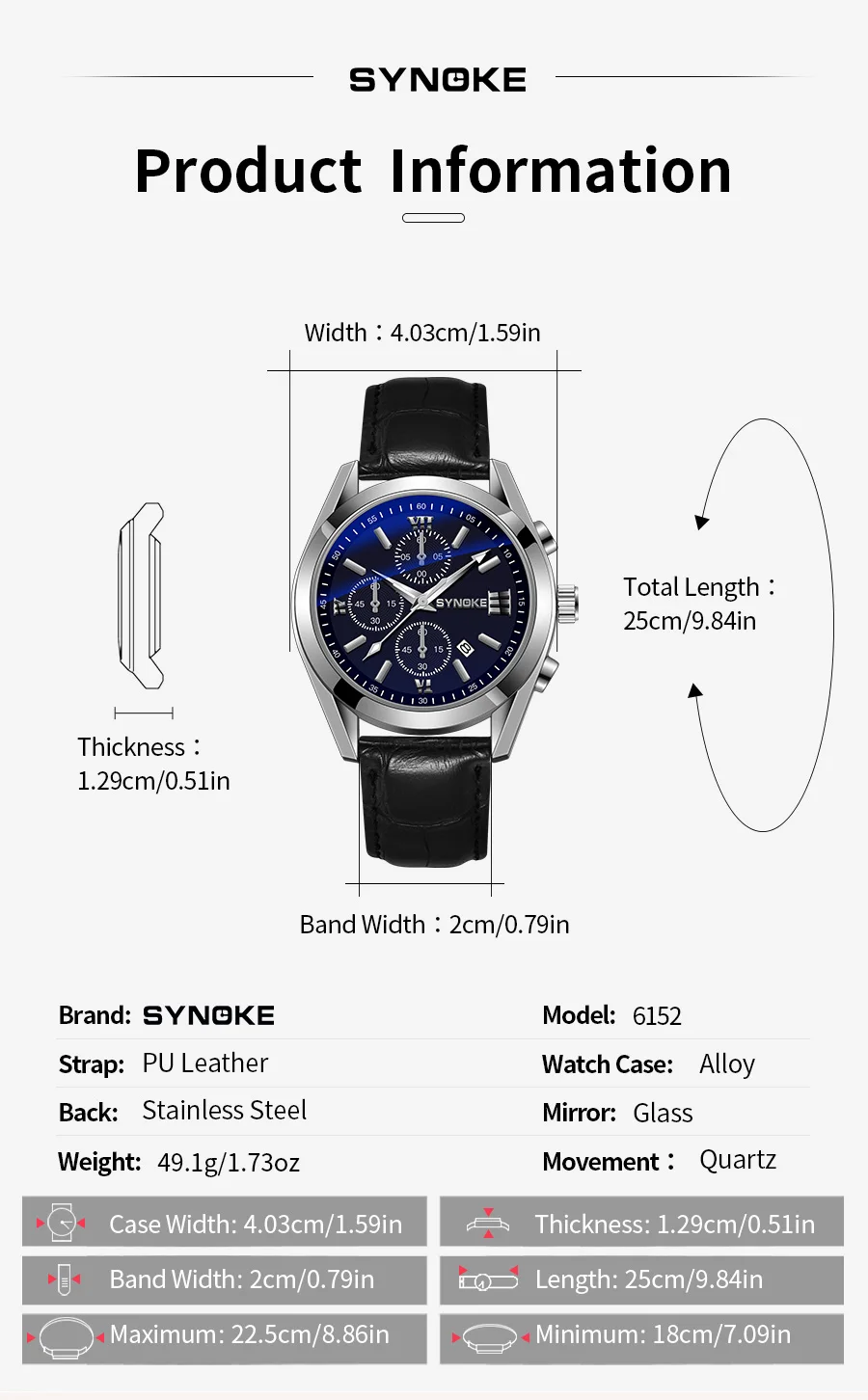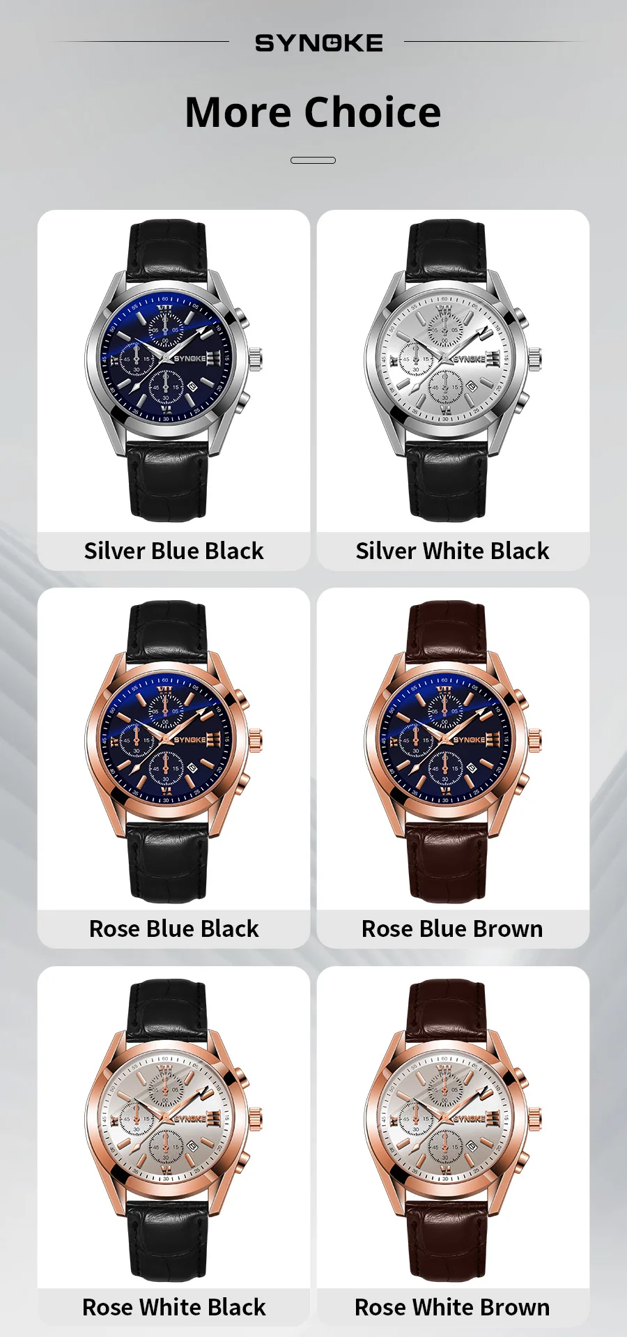 • Material de banda de goma :La banda de goma proporciona una comodidad duradera y resistente, asegurando que el reloj se mantenga en su lugar durante todo el día.