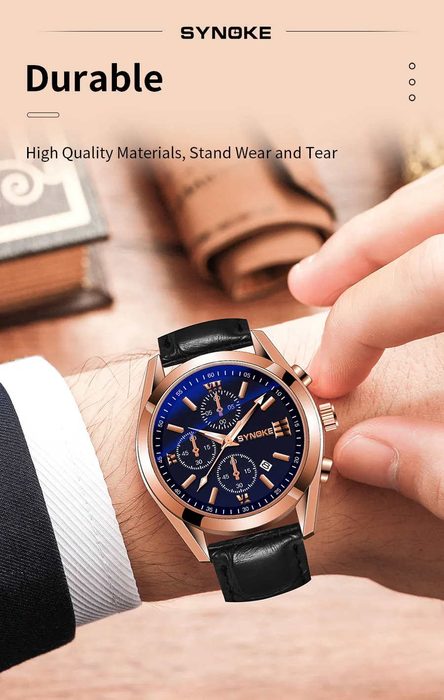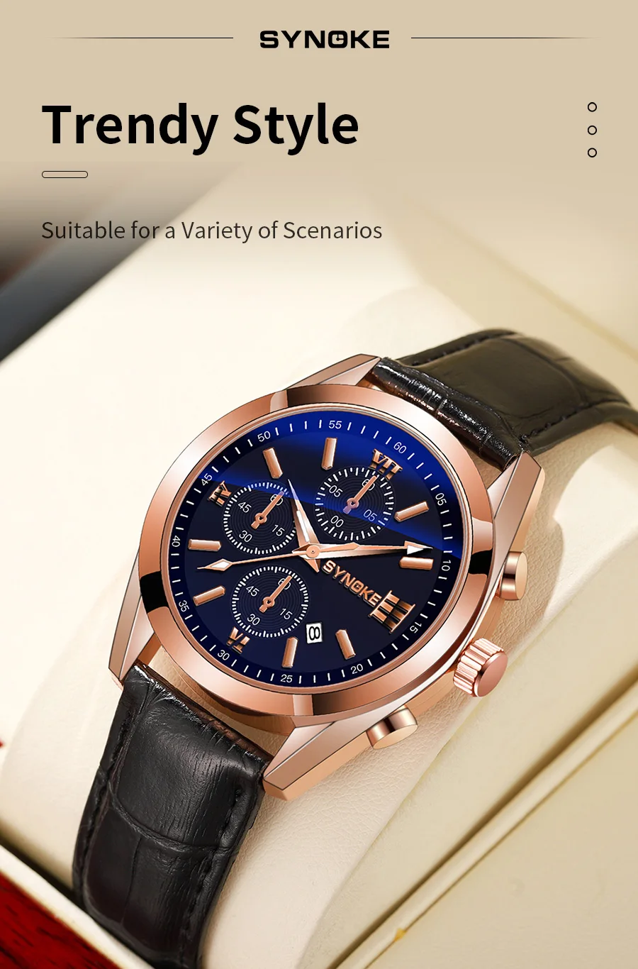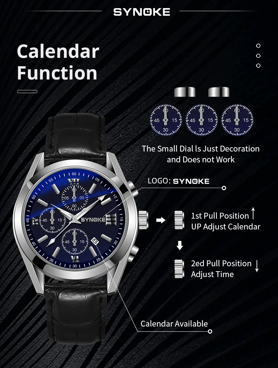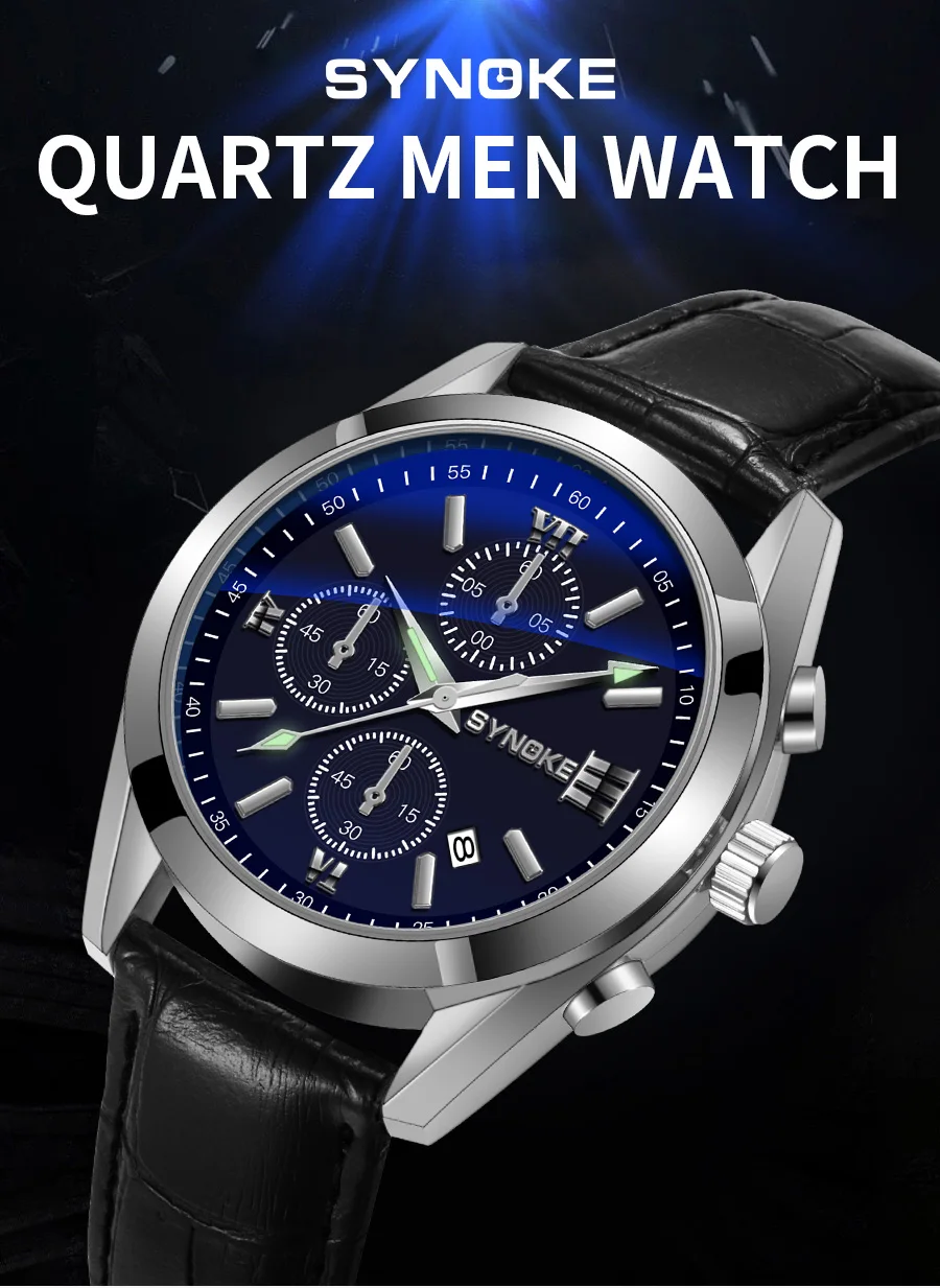 SYNOKE Moda Hombres de Negocios Ocio Cinturón No Mecánico Aleación Hombres Reloj Night Glow Impermeable Calendario Reloj de Cuarzo