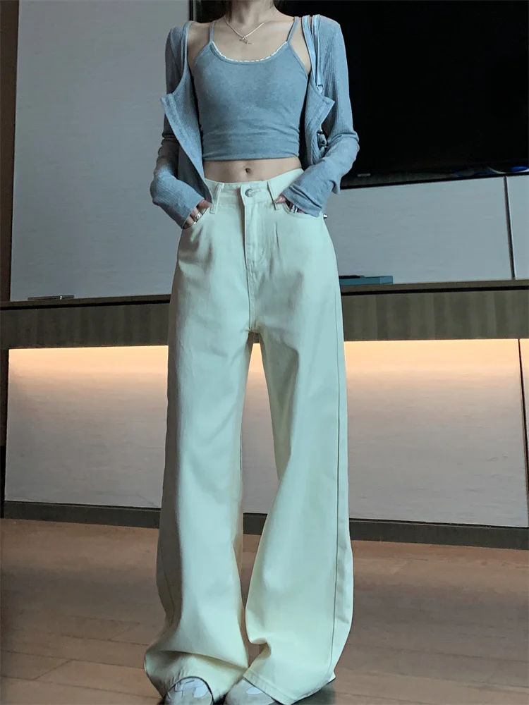 Jeans de verano para mujer - Pantalones vaqueros de pierna ancha color crema |