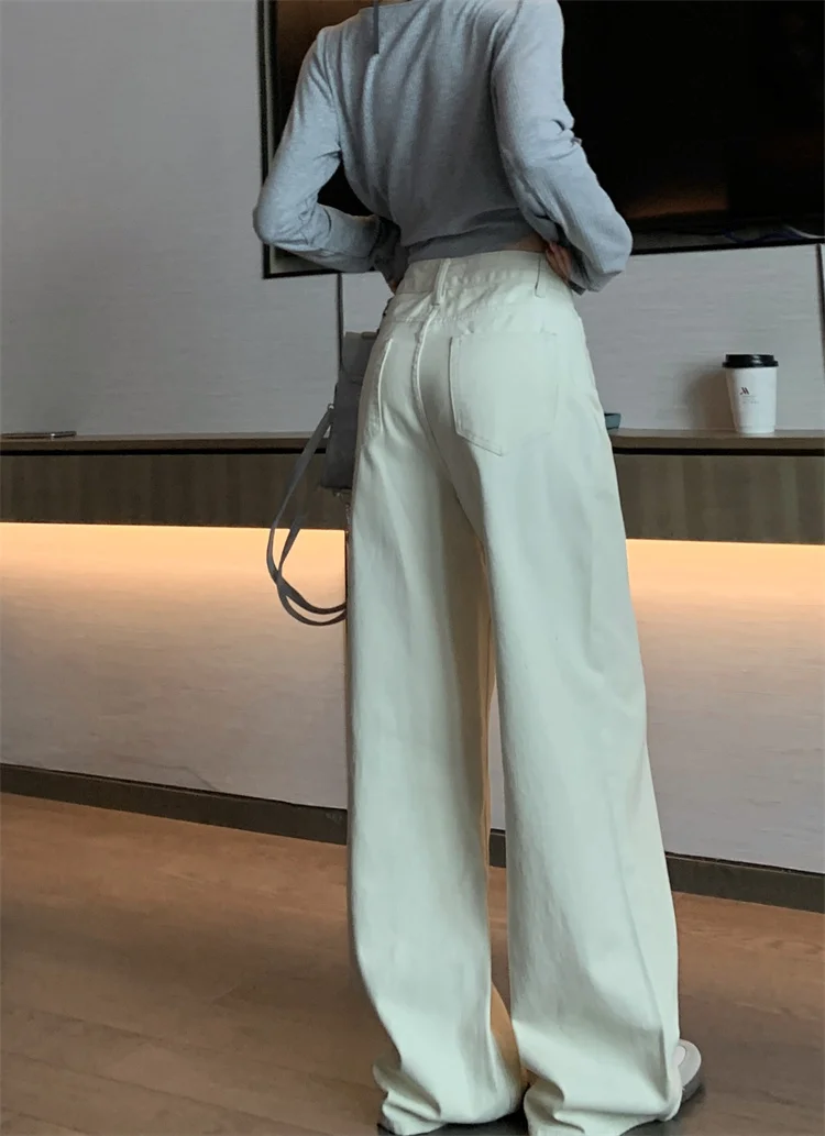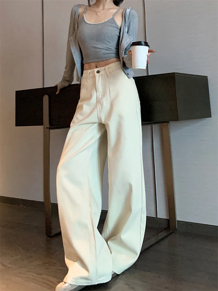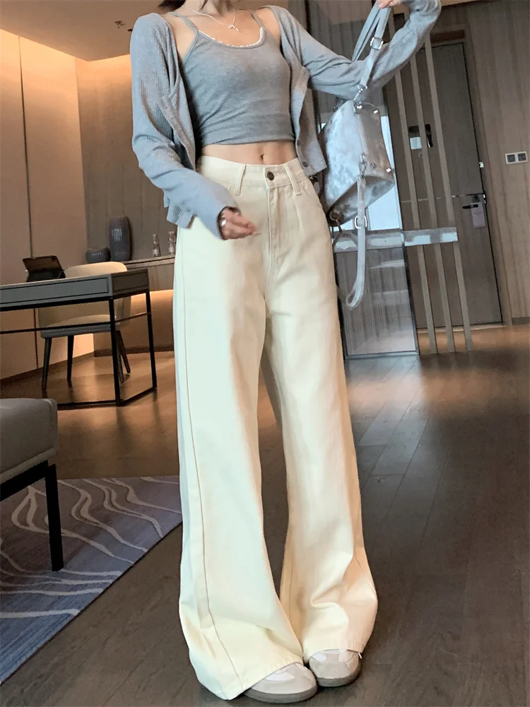 Lo último en vestuario esencial: jeans de pierna ancha beige cremosos