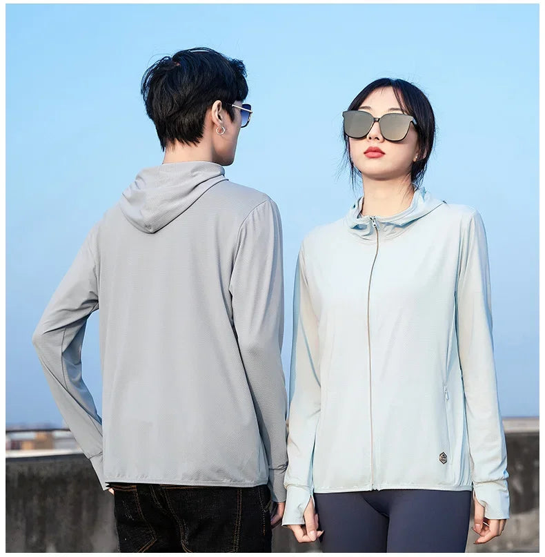Chaqueta unisex novedad de verano UPF 50+ UV protección solar chaqueta con capucha hombres mujeres ligero senderismo al aire libre